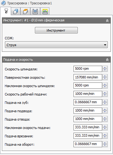 Скорость шпинделя, выраженная как скорость инструмента на поверхности.