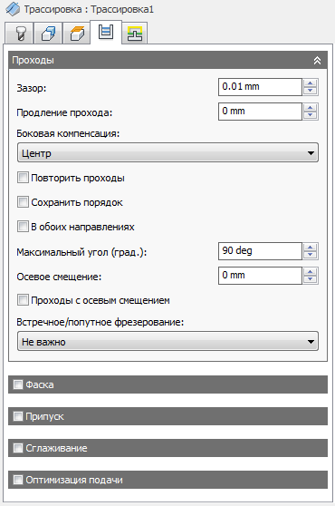 Операция Трассировка позволяет выполнять обработку вдоль контуров с различными значениями Z, а также с компенсацией слева и справа и без нее. При использовании компенсации слева и справа можно столкнуться с разъединенными проходами в углах вследствие резких изменений в значениях Z.