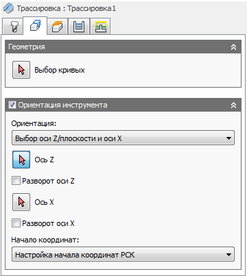 Определение способа ориентации инструмента с помощью комбинации параметров ориентации триады и начала координат.