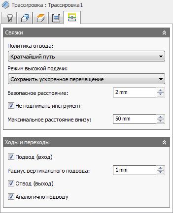 Управление способом перемещения инструмента между проходами резания. На следующих рисунках показано использование метода на основе расхода.