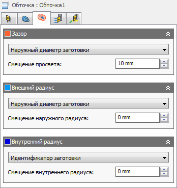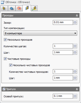 При изменении значения радиального припуска для осевого припуска автоматически задается аналогичное значение. Задать осевой припуск можно и вручную.