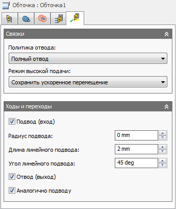 Управление способом отвода инструмента до диаметра просвета после каждого прохода резания или просто отводом на небольшое расстояние от заданного участка обработки. Расстояние определяется значением Безопасное расстояние.