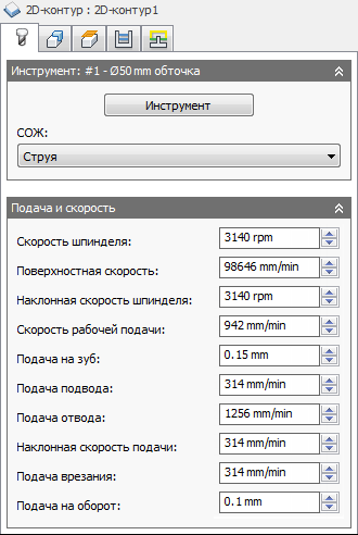 Скорость шпинделя, выраженная как скорость инструмента на поверхности.