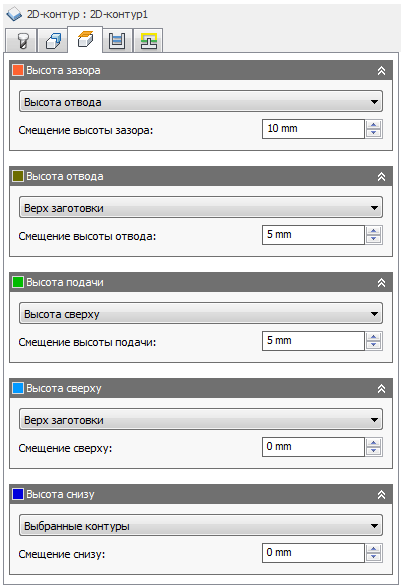 Параметр Смещение высоты подачи применяется к значению параметра "Высота подачи", выбранному в приведенном выше раскрывающемся списке, и отсчитывается относительно его значения.