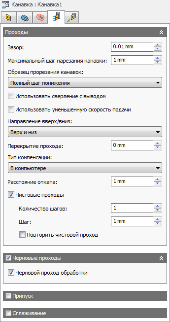 При включении данного параметра выполняются проходы чистовой обработки с помощью боковой части инструмента.