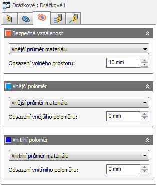 Определение радиального ограничения путем задания граничных значений внутреннего радиуса кривизны траектории, по которой перемещается инструмент. Можно выбрать один из следующих параметров.