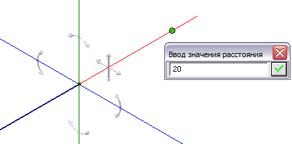 Установите указатель мыши над стрелками вращения или осями направления в 3D ортогональной трассировки и введите точное значение расстояния.