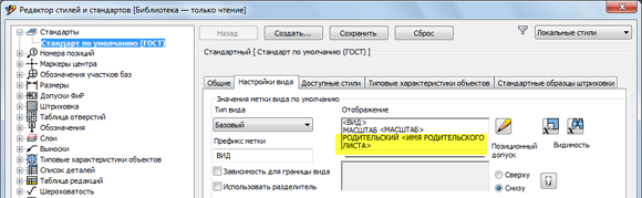 Определение ссылки на ассоциативный лист вида чертежа в метках вида
