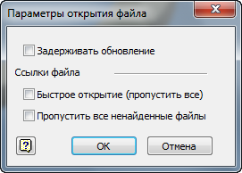 Новый параметр Быстрое открытие в диалоговом окне "Параметры открытия файла" позволяет быстро открывать файлы. При выборе параметра Быстрое открытие не выполняется поиск или разрешение каких-либо файлов, на которые в чертеже есть ссылки. Чертеж открывается так, как если бы в нем не было ссылок на файлы. Можно вносить изменения и сохранять их.