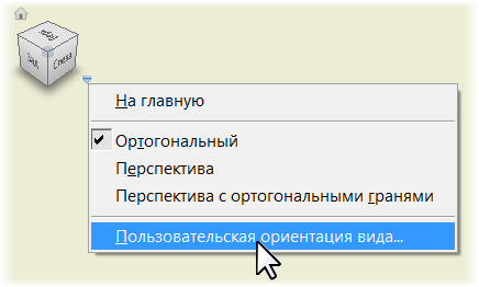 Щелкните правой кнопкой мыши видовой куб и выберите "Пользовательская ориентация вида", чтобы перейти в среду "Произвольный вид". Затем задайте ориентацию пользовательского вида.