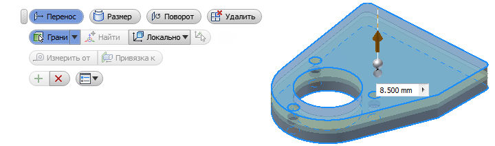 Быстрое изменение деталей с помощью непосредственного редактирования. Можно изменить размер, форму и/или расположение элементов модели путем непосредственного управления геометрией. Непосредственное редактирование следует использовать, если необходимо выполнить следующие действия: