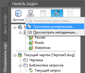 Преобразование данных из одного геопространственного формата в другой осуществляется с помощью функции "Групповое копирование".