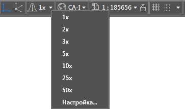 - На панели состояния ниже карты щелкните стрелку, рядом с элементом Увеличение вертикального масштаба.