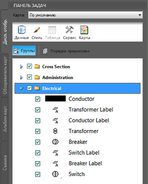Для организации объектов чертежа используются их реальные характеристики (например, дороги, участки, кабели или системы водоснабжения).