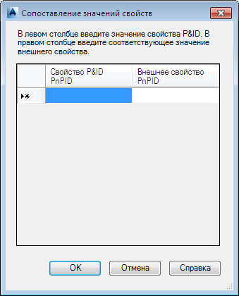 Введите значения свойств P&ID, которые должны соответствовать подобным свойствам в другой программе.