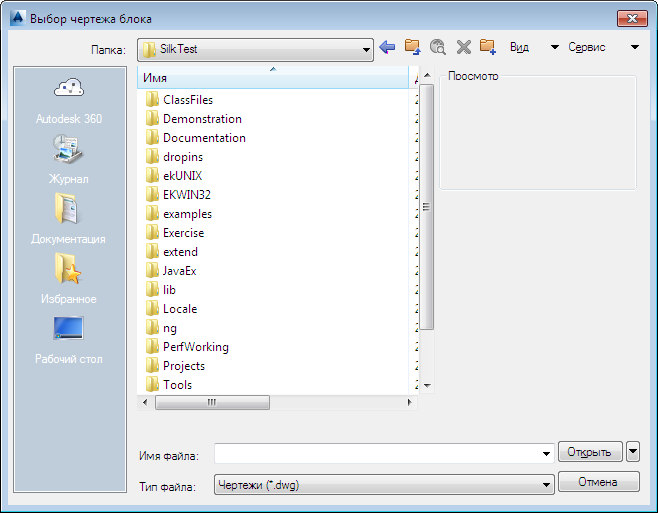 Отображает список блоков, содержащихся в выбранном чертеже.