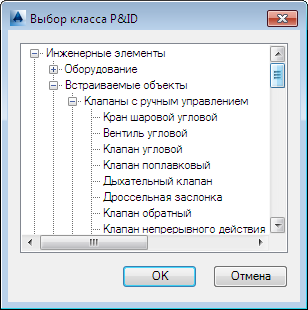 Позволяет выбрать класс P&ID, для которого можно назначить блок (обозначение).