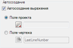 В разделе "Автосоздание" установите флажок "Автосоздание выражения". Щелкните "Поле проекта" (или "Поле чертежа").