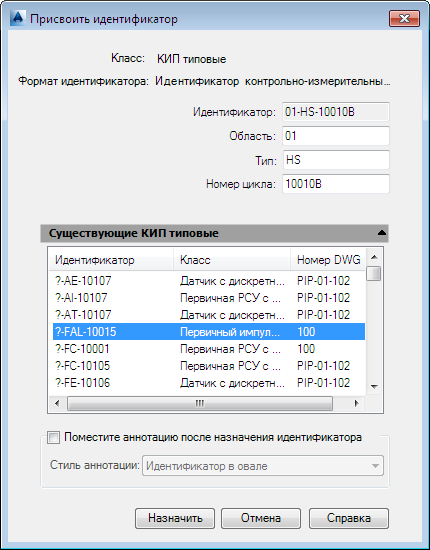 Если администратор настроил форматирование идентификаторов, при добавлении компонента или линии, для которой требуется идентификатор, будет отображаться диалоговое окно "Присвоить идентификатор".