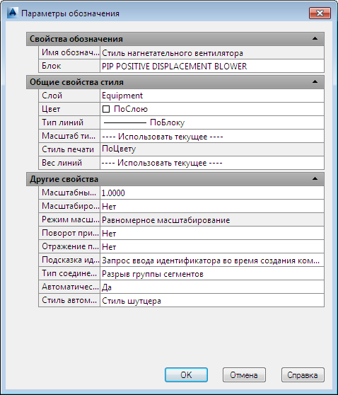 Содержит список общих свойств, назначаемых компоненту при вставке его в чертеж.