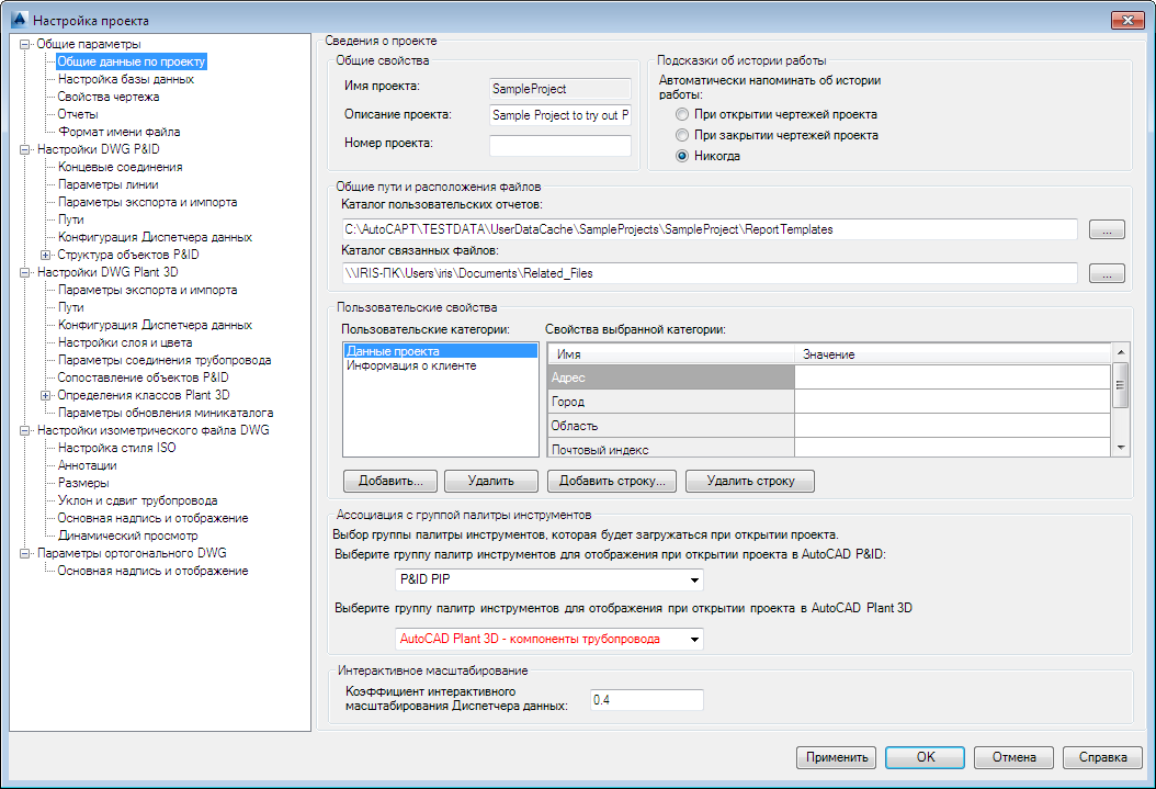 В структуре "Настройка проекта" разверните узел "Общие параметры". Щелкните "Сведения о проекте".
