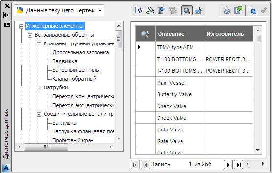 С помощью Диспетчера данных можно просматривать, изменять, импортировать и экспортировать данные чертежей и проектов, а также создавать различные отчеты.