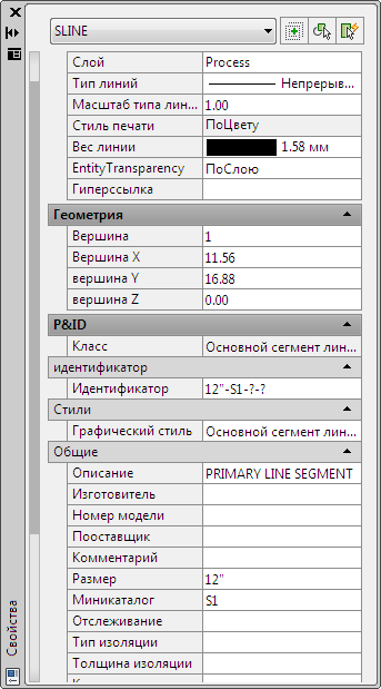 Палитра свойств предоставляет быстрый доступ к данным компонентов и линий.