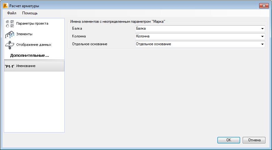 Вкладка "Именование" доступна в режимах проектирования и проверки. Она используется только для тех элементов, для которых не определен параметр "Марка". Данная вкладка может использоваться для определения префикса имен ЖБ элементов Robot.