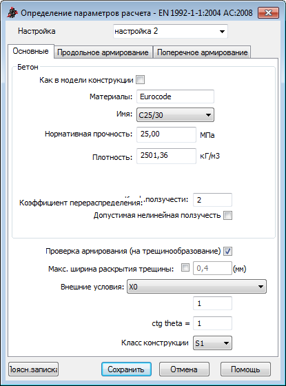 ("Параметры расчета ж/б элемента"), чтобы открыть диалоговое окно "Параметры расчета", а затем нажмите
