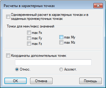 Это диалоговое окно используется для определения координат характерных точек, для которых будут выполнены расчеты элемента или проверки.