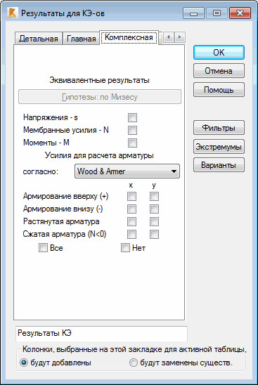 Средняя часть диалогового окна содержит список для выбора метода расчета армирования; доступные методы - метод Wood&Armer и метод NEN.