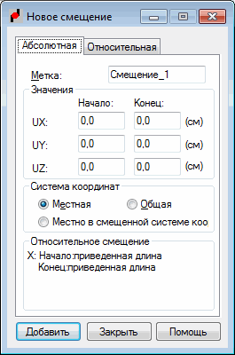 Диалоговое окно "Новое смещение" состоит из двух вкладок: