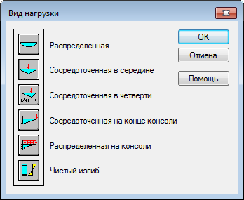 Это диалоговое окно используется для определения набора нагрузок анализируемой балки.