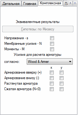 В диалоговом окне Разрезы плиты, выберите вкладку Комплексные для вывода на экран следующих опций.