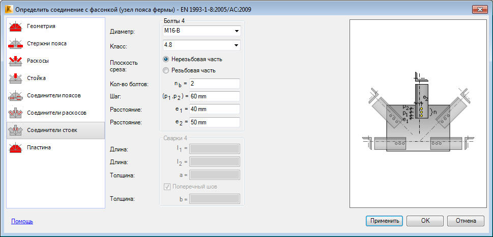 На вкладке "Соединители стоек" задаются следующие параметры стойки: