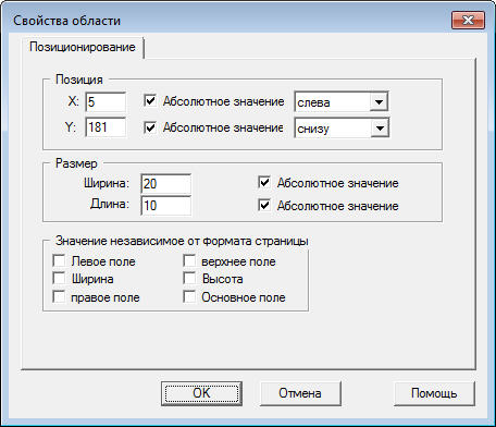 На вкладке "Положение" содержатся те же параметры, что и на соответствующей вкладке диалогового окна Свойства текста. Кроме того, можно определить размер вида и указать, какие значения должны быть независимым от формата листа (в конфигурации по умолчанию, все значения, пересчитываются пропорционально модулем печати Robot когда формат страницы меняется).