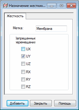 Определение новой жесткой связи заключается в присвоении этой связи Метки, а также в указании закрепляемых степеней свободы: