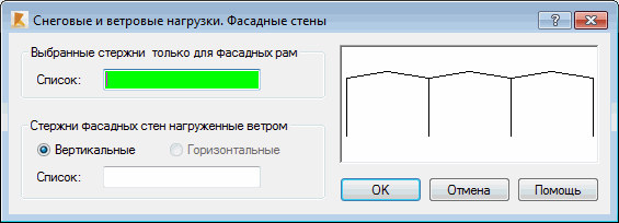 Когда список фасадных стержней, нагруженных ветровой нагрузкой, пуст, положение первого стержня в списке автоматическивключает правильное положение нагруженных стержней (вертикальное или горизонтальное).