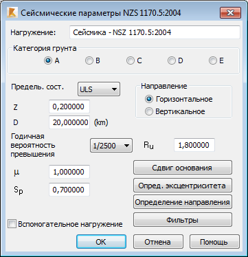 Для выполнения сейсмического расчета согласно требованиям, указанным в нормах NSZ 1170.5:2004, необходимо определить следующие параметры:
