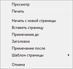 Как только выбрана опция "Вставка разрыва страницы" (), объект, добавленный на правой панели, начнется с новой страницы. Команда из контекстного меню может также использоваться для вставки разрыва страницы. Для этого нужно нажать правую кнопку мыши, когда курсор находится на правой панели.