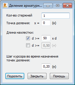 - "Точка деления x": указание координаты точки деления одного или нескольких арматурных стержней;