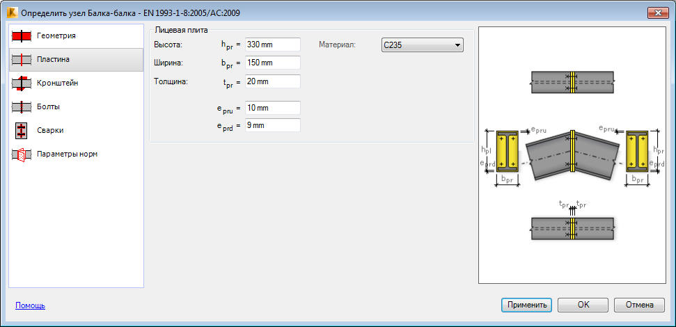 Эта закладка доступна только тогда, когда опция Болтовое соединение выбрана на закладке Геометрия.