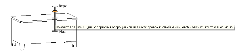 В отличие от инструмента панорамирования, инструмент перемещения вверх/вниз позволяет корректировать высоту текущей точки обзора по оси Z модели. Чтобы откорректировать вертикальную отметку текущего вида, необходимо перетаскивать устройство указания вверх или вниз. При перетаскивании курсора текущая высотная отметка и допустимый диапазон движения отображаются на графическом элементе, называемом индикатором вертикального расстояния.