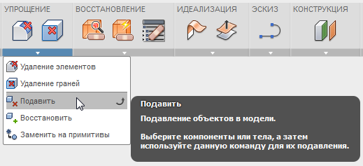 Уменьшение сложности путем подавления объектов в модели перед передачей геометрии в приложение для моделирования. Выберите соответствующие объекты и используйте команду Подавить панели Упрощение.