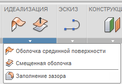 - Используйте параметр Срединная поверхность оболочки при создании оболочки деталей и извлечения толщины из твердых тел.