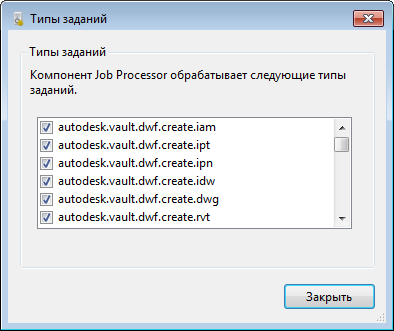 Пользователь может просмотреть все обрабатываемые рабочим процессом типы заданий в диалоговом окне "Типы заданий".