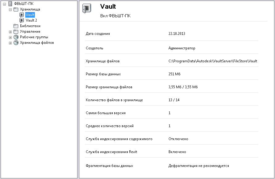 - версия сервера Autodesk Vault, использованного для создания хранилища
