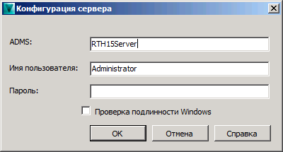 "Управление". Установите флажок "Проверка подлинности Windows", чтобы использовать учетные данные Windows.