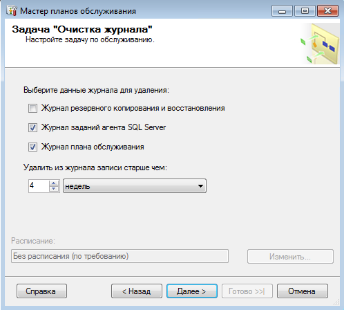 Прим.: При копировании из этого документа и последующей вставке требуется восстановление разрывов строки. Также обратите внимание, что пользователь, выполняющий план обслуживания, должен иметь соответствующие права доступа в SQL. Это можно выполнить во время или после установки SQL.