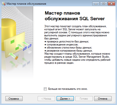 Планы обслуживания можно использовать для планирования задач, необходимых для проверки работы базы данных, таких как поддержание небольшого размера базы данных и файл журнала транзакций и проверка базы данных на наличие несоответствий.
